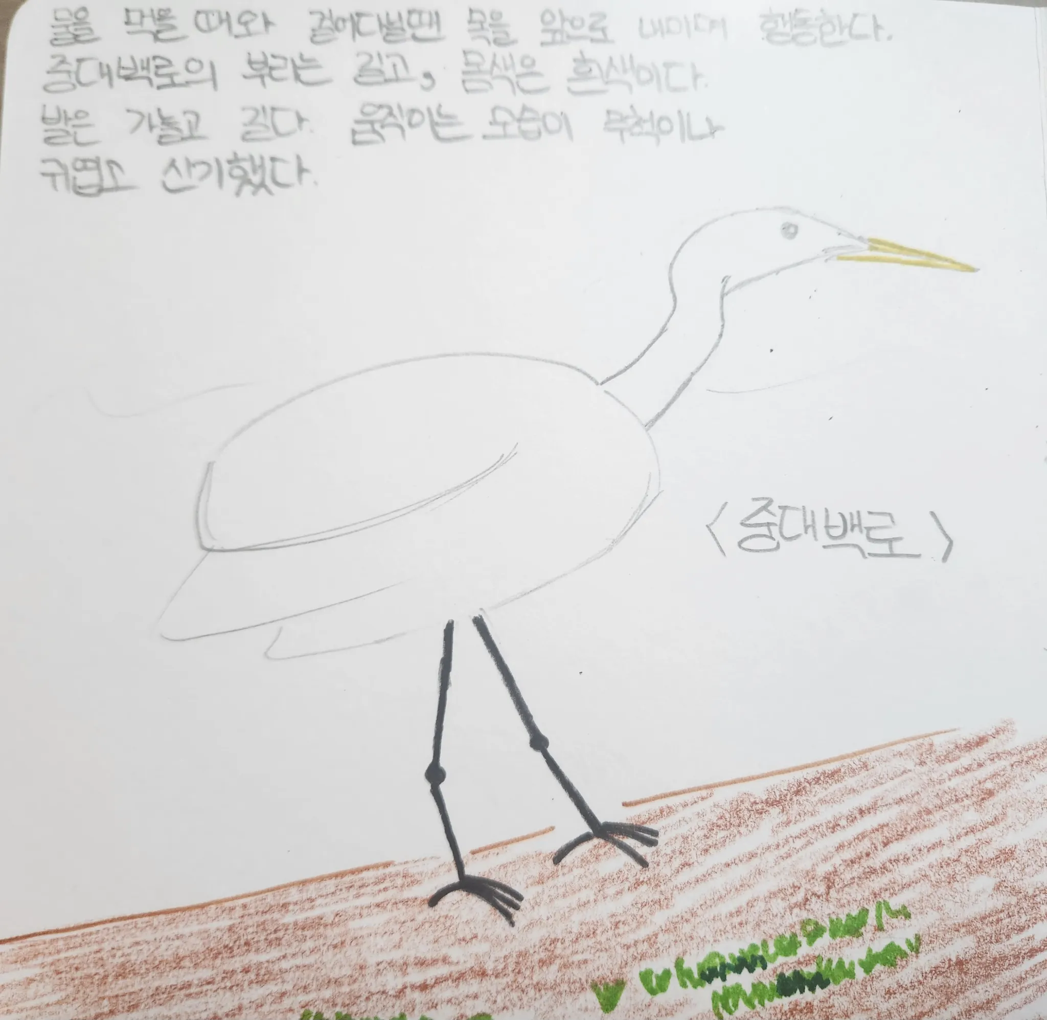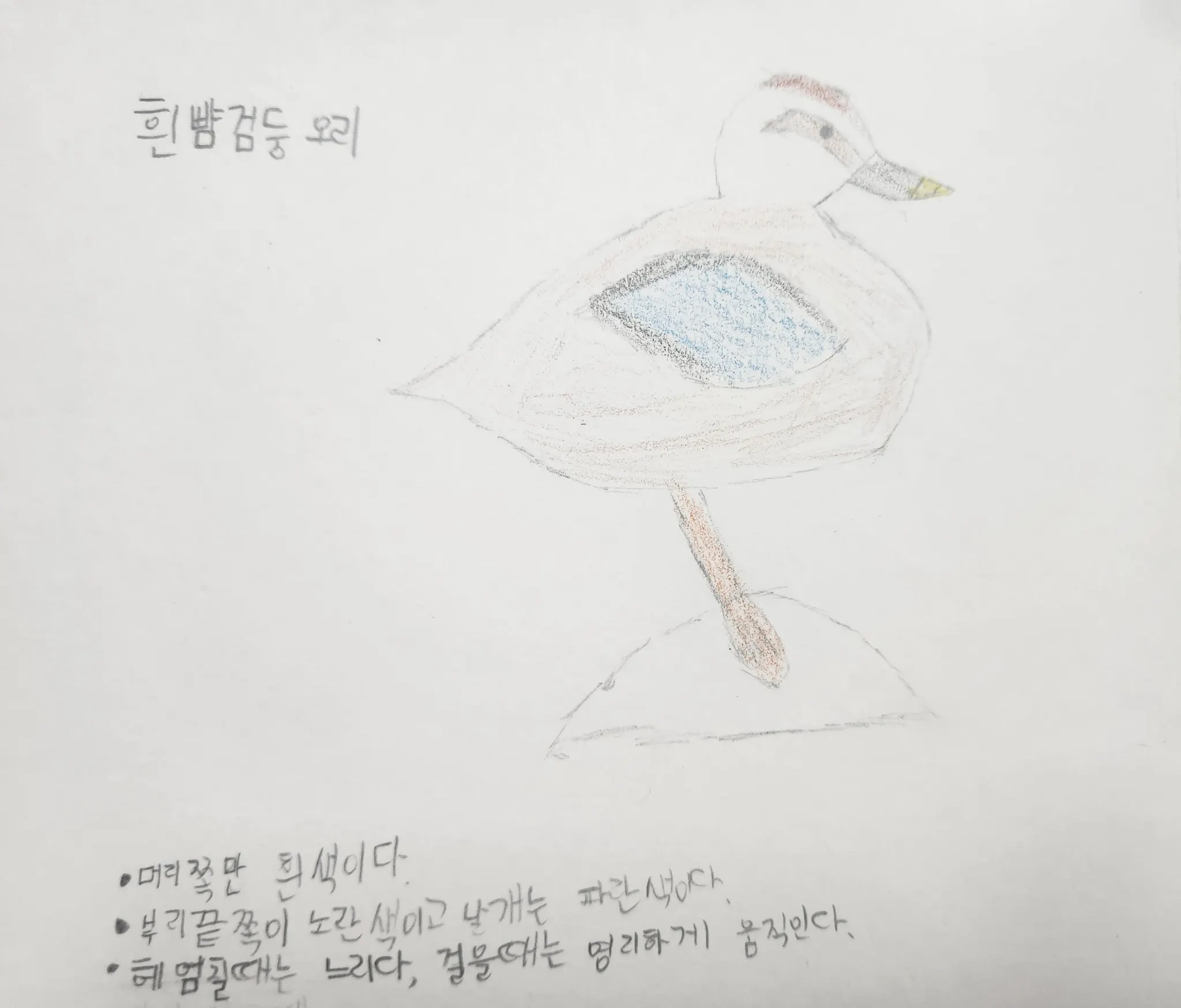 오늘 만난 새 중 인상적인 새 그리고 특징 쓰기