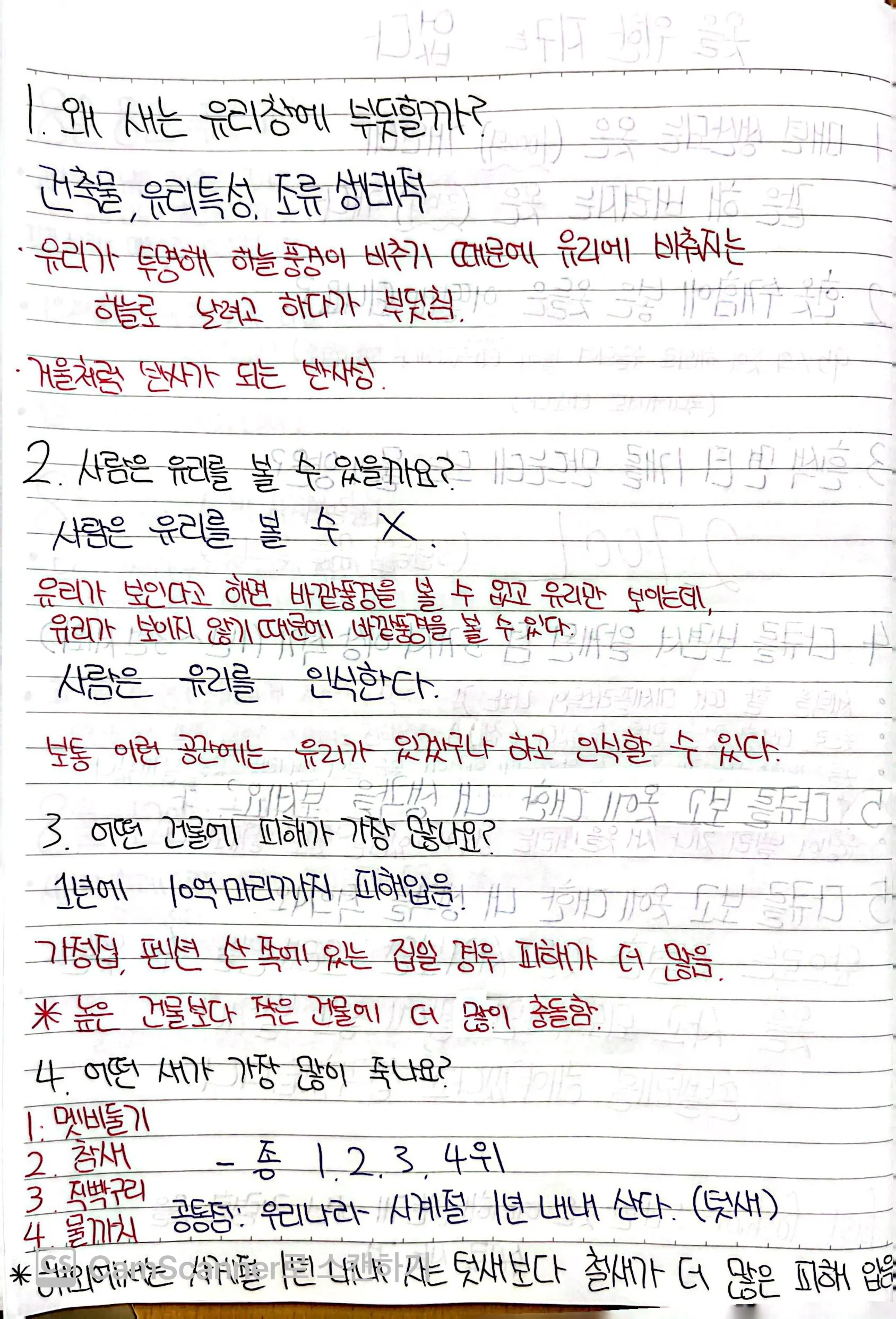 투명성, 반사성의 이유로 새들이 건물이 높든 낮든 상관없이 부딪칠 수 있다는 것을 알려주셨어요.