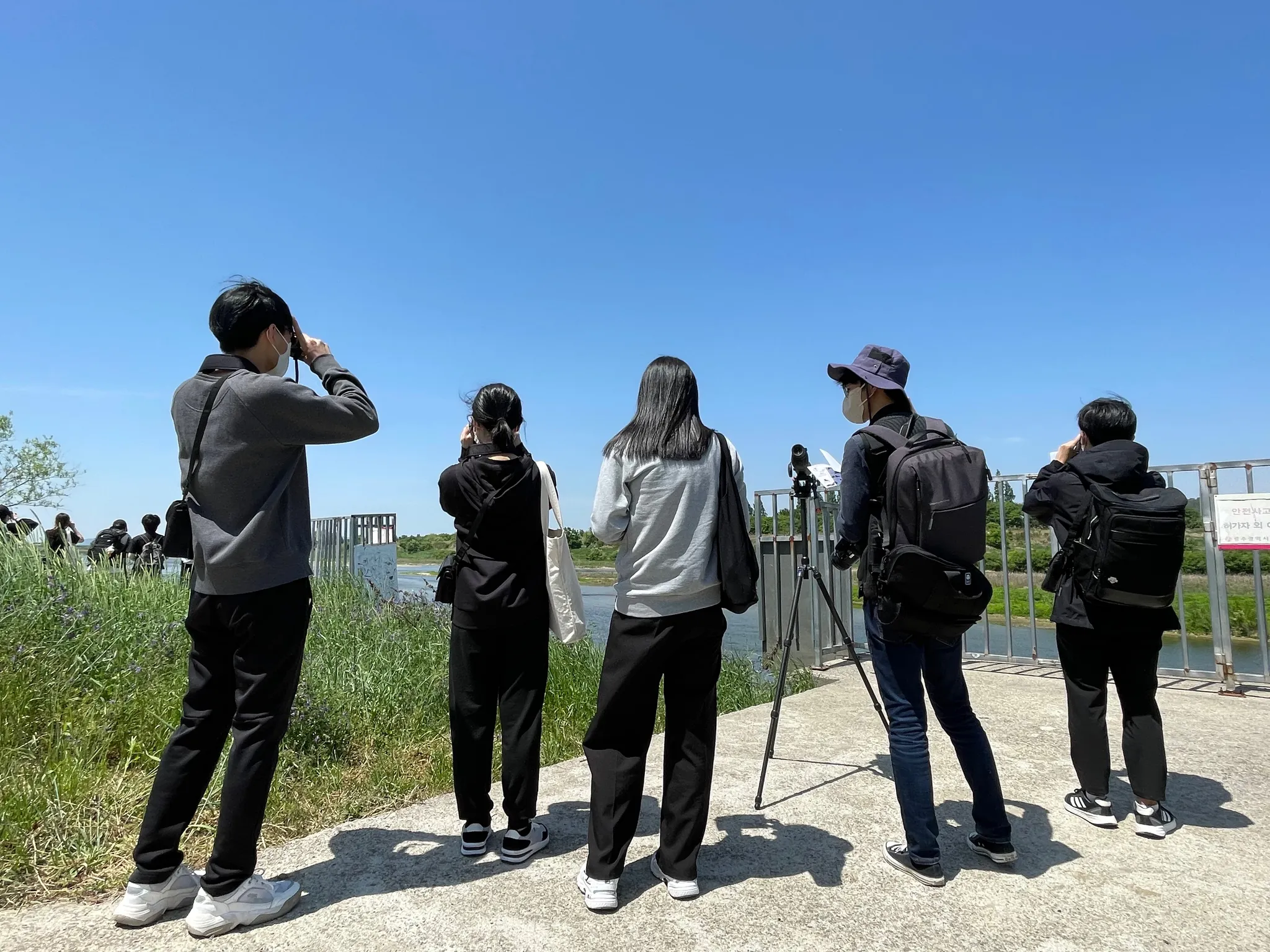 오면서 까지는 과연 이 날씨에 3시간 동안이나 탐조를 계속할 수 있을지 걱정이 되기도했었다. 하지만 바람이 시원하게 불어 수월하게 진행할 수 있었다. 탐조를 하면서 쇠백로, 중대백로, 민물가마우지, 왜가리, 깝작도요, 꼬마물때새, 알락할미새 등 여러 새들을 관찰할 수 있었다. 새들이 보여주는 여러 행동들이 신기하면서, 재미있었다.